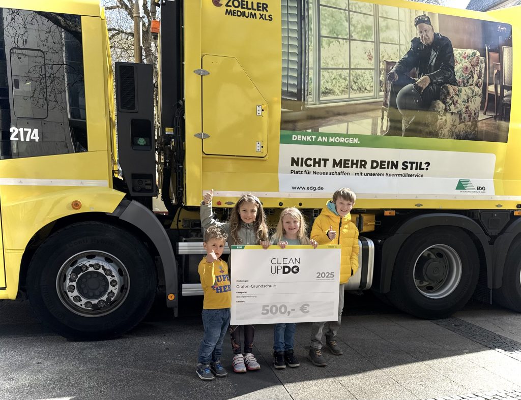 Einen Gewinn von 500,-€ konnten die Kinder der Grafengrundschule am 5. April 2025 auf dem Reinoldiplatz entgegennehmen. In der Kategorie „Bildungseinrichtungen“ hat unsere Schule den 1. Platz belegt. Dies ist eine große Belohnung für unsere regelmäßig mehrmals im Schuljahr durchgeführte Aktion „Sauberes Deusen“, bei der die Kinder für den verantwortungsbewussten Umgang mit Ihrer Umwelt und insbesondere mit dem Thema Müll, Müllvermeidung und vorschriftsmäßige Müllentsorgung sensibilisiert werden.