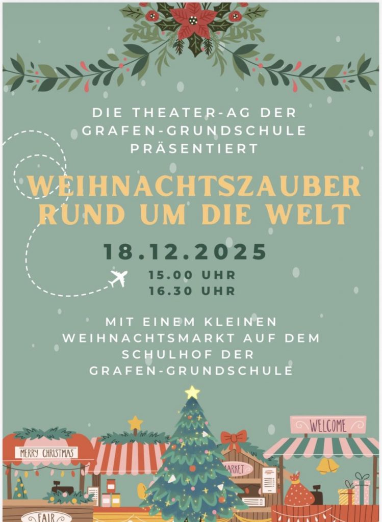 Am Donnerstag, den 18.12.2025 findet unsere diesjährige Weihnachtsfeier rund um die Grafengrundschule statt.
